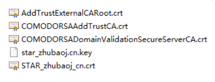2、除了可以在纳点网上下载到证书之外,用户在申请证书时提交的邮箱中也会收到Sectigo发来的证书。但邮箱中收到的证书可能出现两种样式,第一种跟上方从纳点网上下载到的样式相同,另一种则是由五个部分组成,如下图所示,合并方法也是一样的,只是需要注意一下顺序: