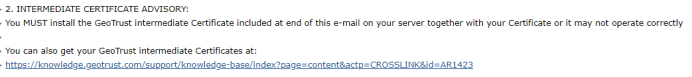 注:如果邮件中没有中间证书,用户可以自己到官网下载,下载地址会在该邮件中提及(如下图),用户根据地址下载即可。
