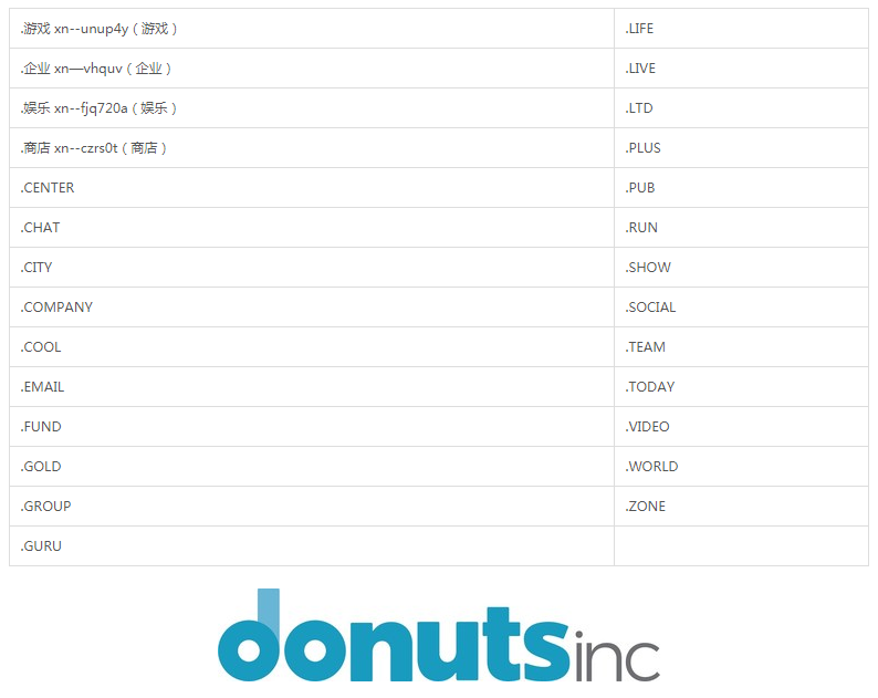 优质新顶级互联网域名领域的全球领导者Donuts Inc今天宣布,在获得中国工信部的批准后,公司显著扩大了其面向中国市场的授权顶级域名组合。Donuts的27个中国授权域名组合目前包括: