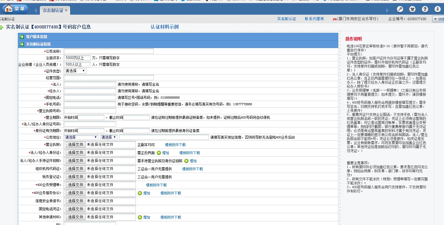 为尽可能的节约人力及尽快完成实名认证,请通知代理商尽量引导400用户自助登陆平台完成实名认证。 系统已为所有认证暂未通过的用户,批量新建了,专用的认证帐号: 终端统一登陆后台:www.c4006.com.cn 用户名:sm@400*******(请输入用户的400号码) 认证登陆密码:123456 登陆后台后,用户能直接查看认证指引。